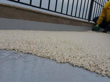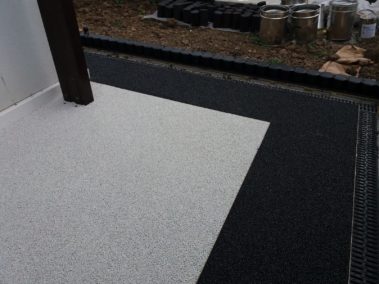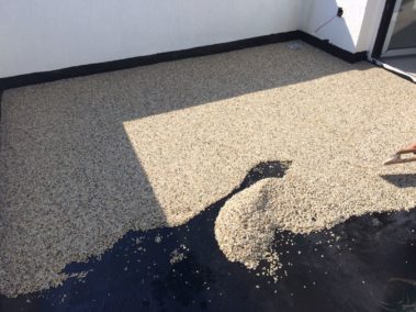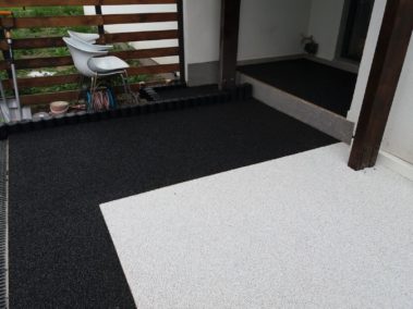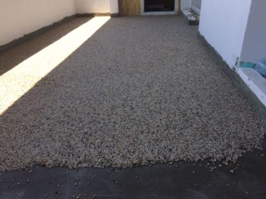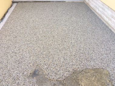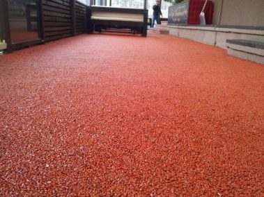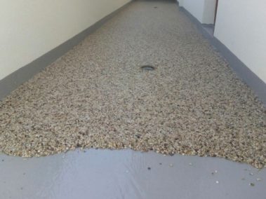 Un covor decorativ din piatra cunoscut de asemenea ca podea din pietris este un finisaj de podea facut din nenumarate pietricele de cuart marunte care sunt imbinate printr-o rasina epoxidica.