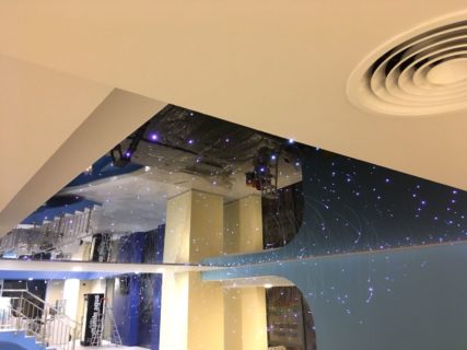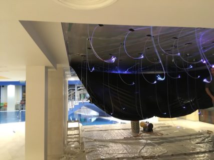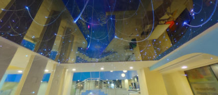 Centrul Aria Spa & Wellness situat in Sibiu, ne-a ales pe noi pentru montarea unui tavan extensibil negru lucios impreuna cu 1200 puncte de fibra optica, avand o suprafata de cca. 37 mp, acesta fiind situat in zona de relaxare.