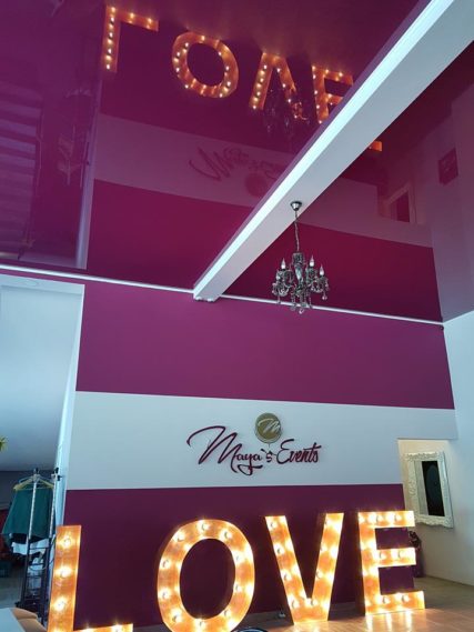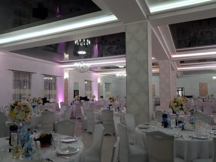 Restaurantul modern ” Maya’s Events” situat in Baia-Sprie in judetul Maramures, ne-a ales pe noi pentru montarea a mai multor tavane extensibile lucioase, care au transformat locul intr-unul de vis pentru evenimentele tuturor clientilor. Toate tavanele montate de noi au cca. 200mp.