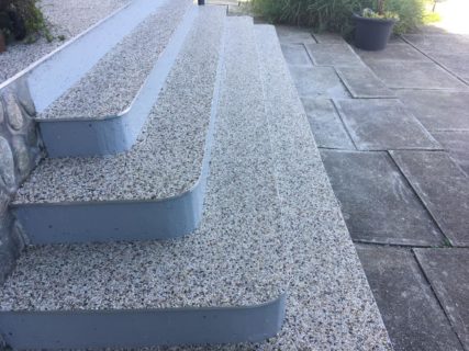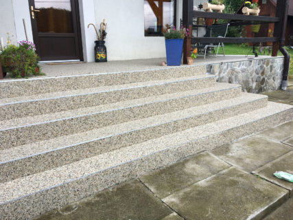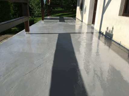 Echipa noastra a realizat hidroizolatia si covorul din piatra pe terasa si pe scarile de acces al unei case rustice.
